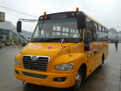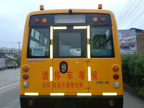 前风挡除霜机,普通内饰、竹胶板加地板革,防盗型安全锤,车内顶灯,GPS行车记录仪,校车停车信号灯,存储一体4+1探头+160G硬盘监控系统,上推拉下封闭式结构侧窗,普通天窗,折叠式窗帘,四方向可调司机座椅,气动外摆门,校车专用座椅3+2布置,配装安全带,校车款后视镜加补盲镜,校车专用油漆。平地板无后行李仓,电、气喇叭、司机电风扇,乘客区六个风扇,二个水暖出风口,电子钟,小遮阳帘,灭火器2个、随车工具,上车扶手,校车护栏,医疗急救箱、电动停车警示牌,巡视器,铝合金轮罩。 |